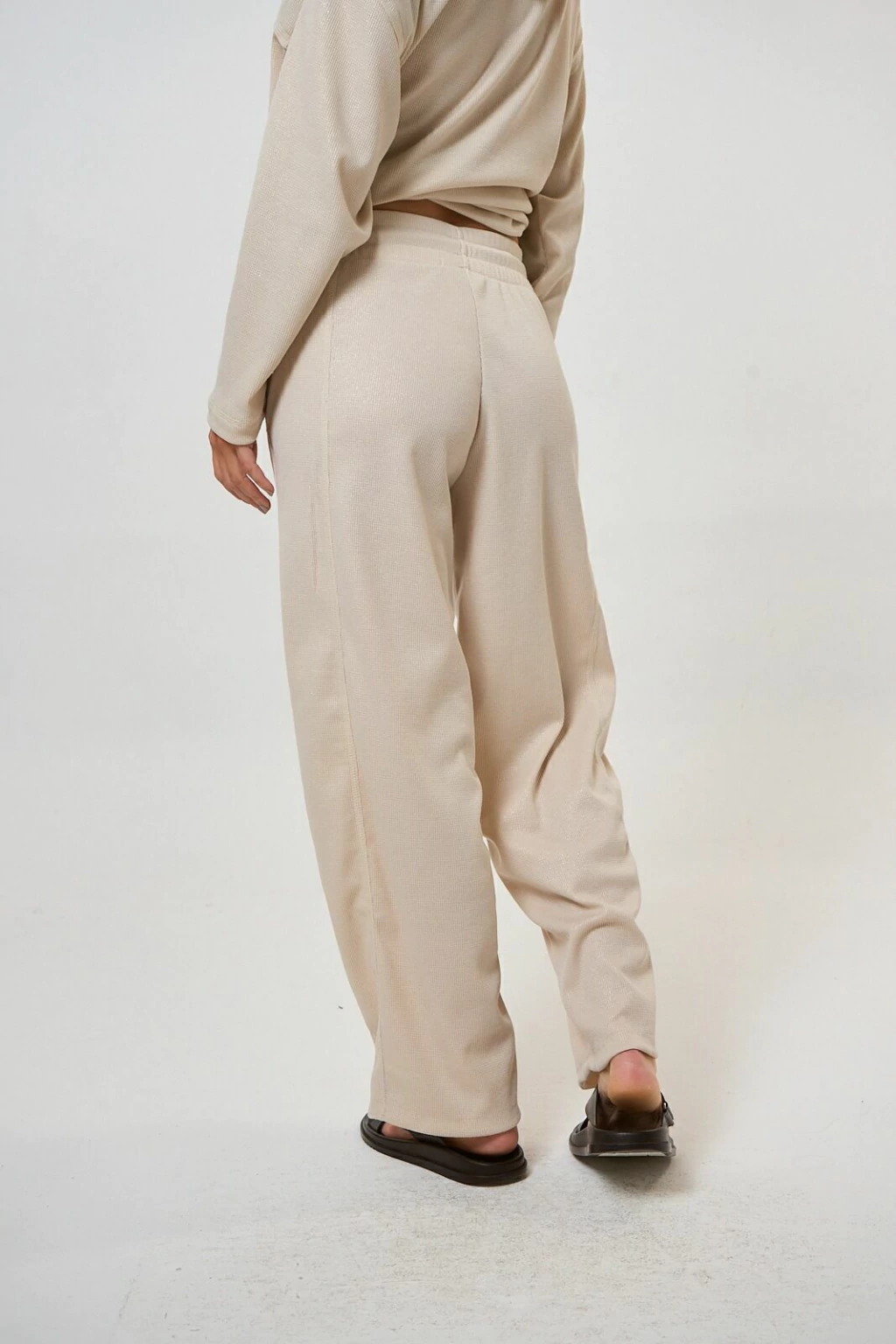 Jogging de wafle con foil, de tiro alto con piernas rectas. Cintura con elástico y cordón para ajustar. Bolsillos laterales ocultos. . Composición: 97% Poliester - 3% Spandex