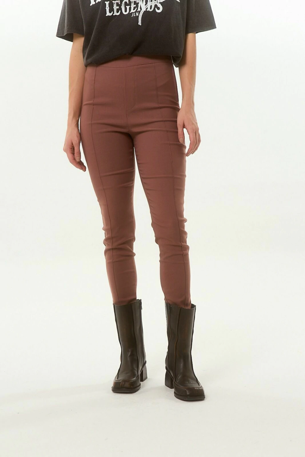 Legging básica de bengalina con alforza en el delantero, cintura cierre lateral y bolsillos ojal falsos en el trasero. 77% rayón - 20% nylon - 3% elastano