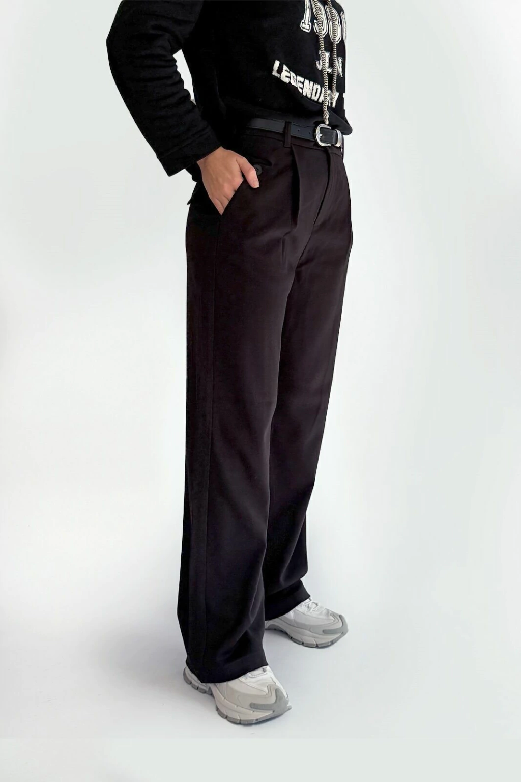 Pantalón sastrero liso con cierre y botón y bolsillos delanteros, de piernas rectas. Tiene cinturón al tono con hebilla metalica. 77% Algodón - 20% Nylon - 3% Lycra
