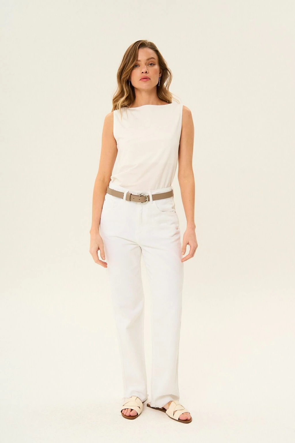 Musculosa con calce al cuerpo. Presenta escote bote y sisas amplias. Confeccionada en Algodón y tencel con Elastano. Composición: 47% Tencel - 47% Algodón -6% Elastano. La modelo está usando talle S.