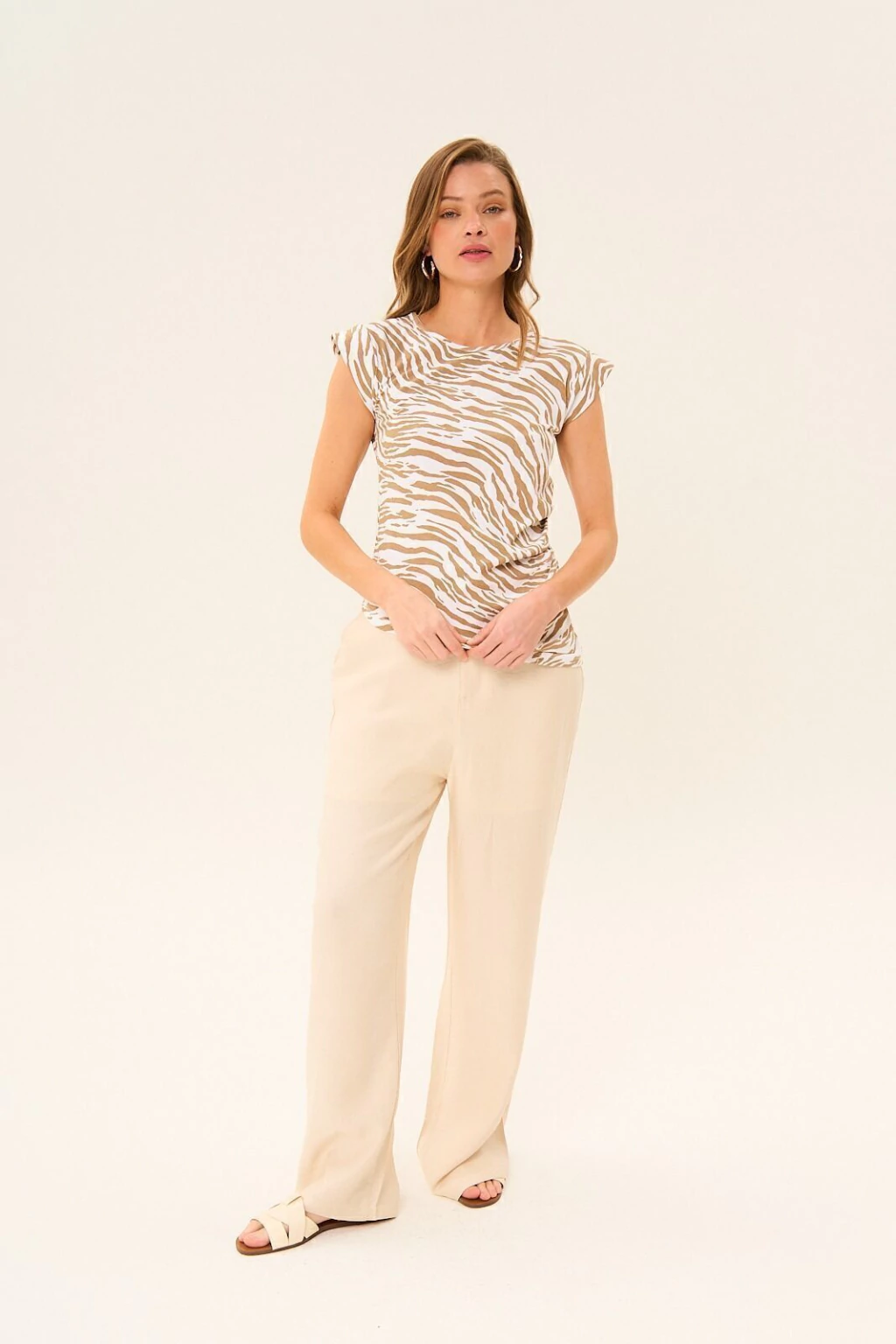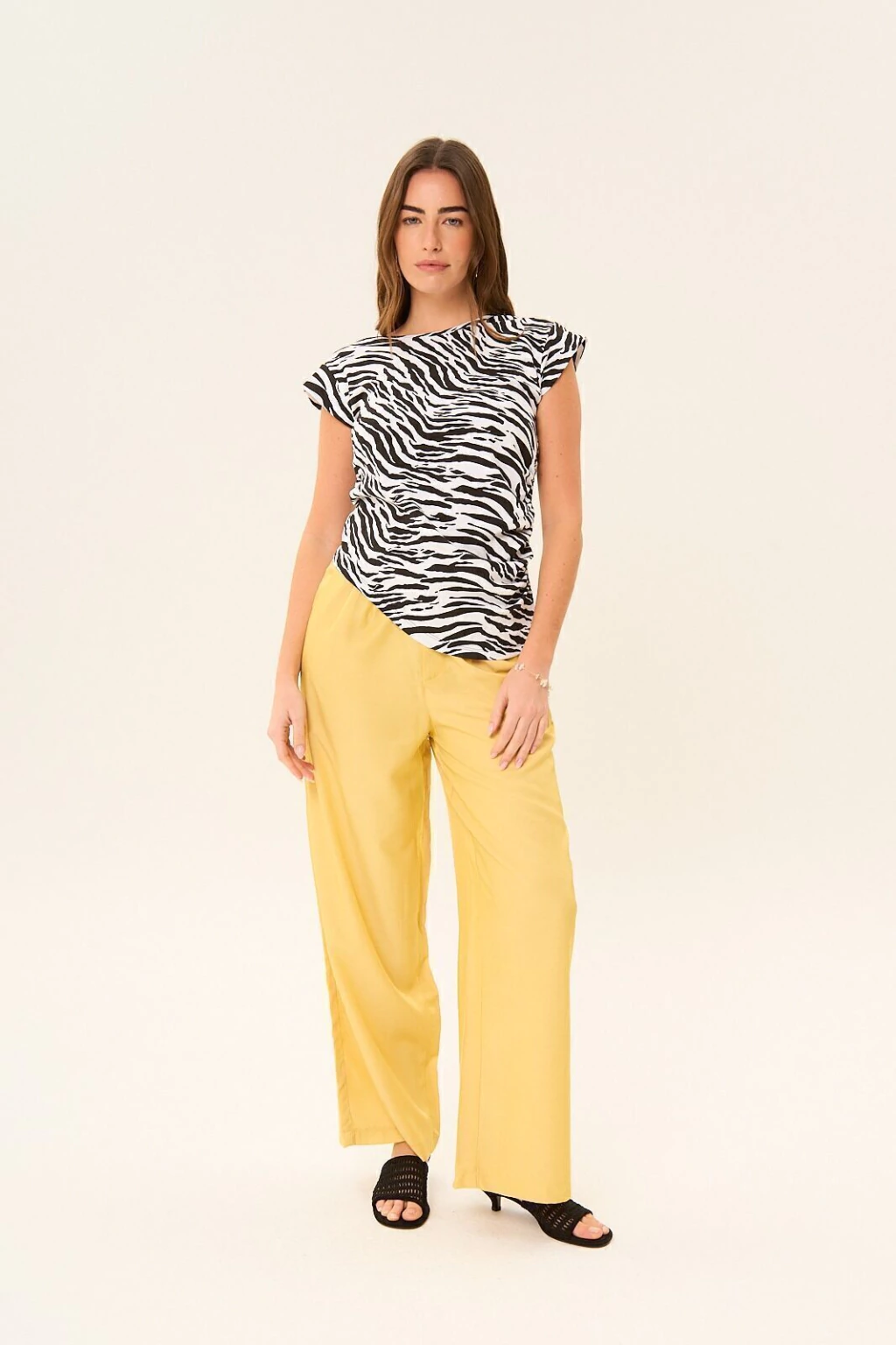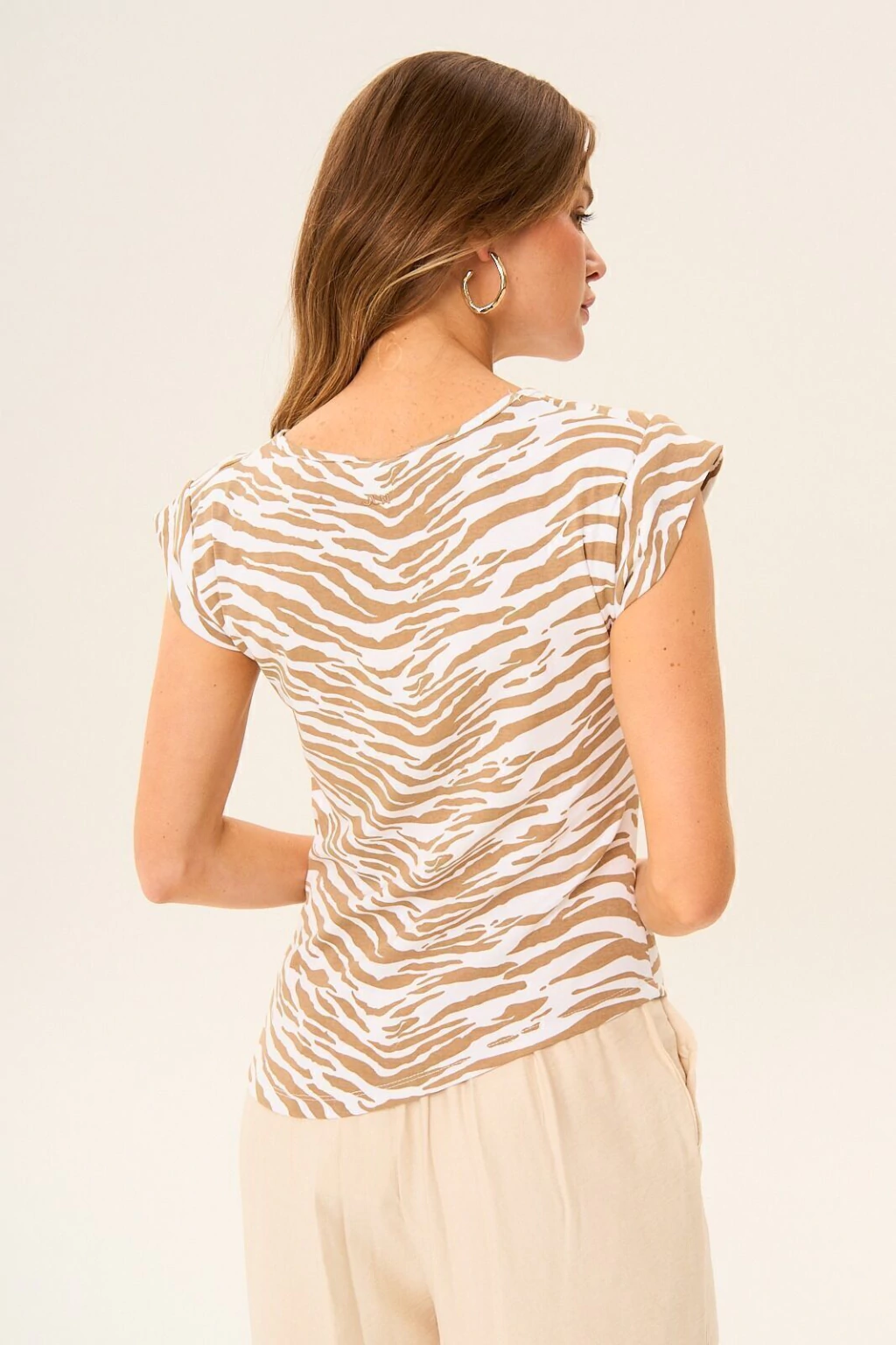 Top estampado con escote cerrado. Drapeado lateral, calce al cuerpo. Ruedo irregular. Composición: 95% Algodón - 5% Elastano. La modelo está usando talle S.